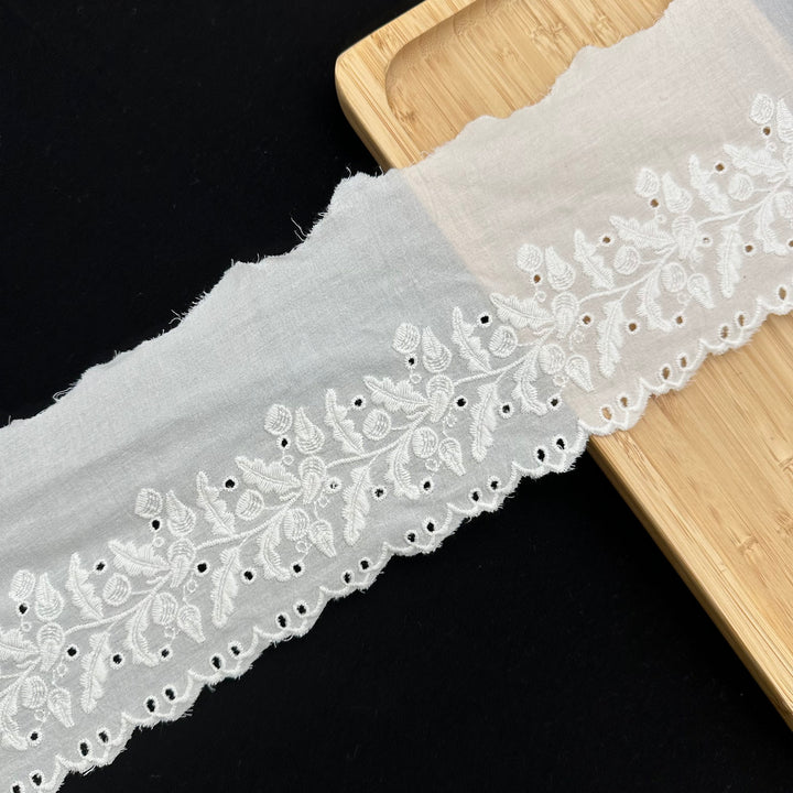 Elevate your designs with our exquisite embroidered cotton mesh lace – the perfect blend of delicate beauty and timeless elegance. Crafted from premium cotton and soft mesh, this luxurious lace trim adds a romantic, airy touch to wedding dresses, lingerie, blouses, and children's apparel. The intricate embroidery patterns create stunning dimensional details while maintaining exceptional comfort and durability.