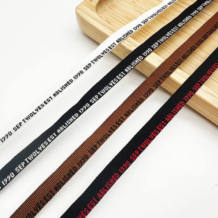 Elevate Your Apparel Designs With Premium Letter-Printed Webbing! Our High-Quality Woven Tapes Feature Customizable Text, Logos, Or Patterns, Perfect For Adding A Unique Brand Identity To Garments, Bags, And Accessories. Crafted From Durable Polyester Or Cotton Blends, These Strips Ensure Fade-Resistant Colors And Long-Lasting Performance, Ideal For Both Casual Wear And High-End Fashion. Available In Multiple Widths, Colors, And Font Styles, They Offer Versatility For Zipper Pulls, Trims, Straps, Or Decorative Accents. Boost Your Product’s Appeal With Professional, Eye-Catching Details That Stand Out In Competitive Markets. Partner With Us For Bulk Orders And Tailored Solutions!